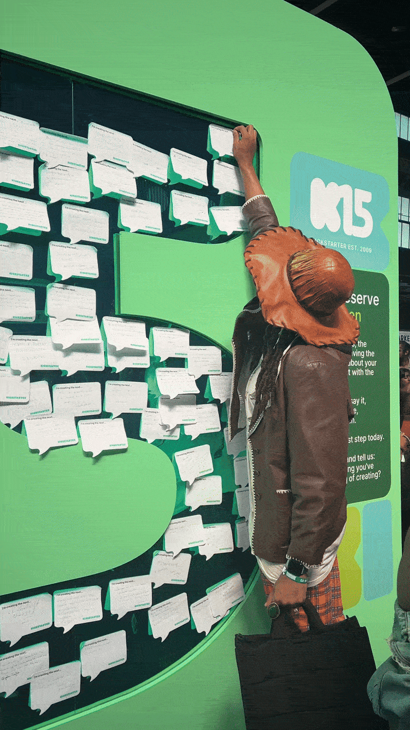 Kickstarter partnered with Mark Stephen Agency to bring its experience to life at CultureCon. We designed an immersive booth with Kickstarter’s signature green, a 12-foot mirrored “K15” logo to celebrate 15 years of creativity, interactive kiosks, a dream wall, and a photo booth, inspiring attendees to turn ideas into action.